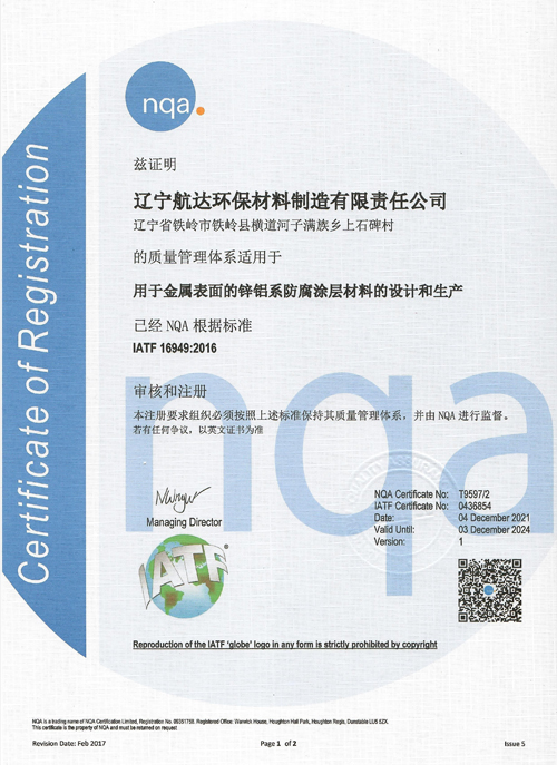 沈陽(yáng)市航達(dá)科技有限責(zé)任公司通過(guò)IATF16949汽車質(zhì)量管理體系認(rèn)證